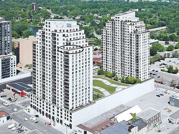 Paradise in the Sky! Impressive Bright 24th Floor Private 2200+ Sq Ft Executive Corner Penthouse with 720 Sq Ft Wrap Around Terrace, and an Additional 186 Sq Ft Balcony off the Master, Only 6 Private Condos on the 24th Floor. 2 Bedrooms + Den, 5 Piece Master Ensuite, and 4 Piece Guest Bathroom. South West Facing Condo with 2 Premium Penthouse Parking Spots (UG 11 & UG 14) + Oversized Storage Locker (Main Level - 6). All the Finishing's You Can Expect in a Luxurious Penthouse, Plus High-End Audio / Video System throughout Professionally Installed by London Audio. Open Design is Perfect for Entertaining. Modern Hardwood Flooring (no carpet), Large Master Bedroom, 2 x Walk in Closets, with 5 Piece Ensuite Bathroom, Modern Walk-in Shower, Separate Jucuzzi Tub, Double Sinks & Heated Flooring. High End Upgraded Stainless Steel Appliances Complete with Customized Granite Counter Tops & In-Suite Laundry. Building Facilities include Large Professional Exercise Centre, Massive Party Area w/Pool Table, Professional Theatre Room, Outdoor Terraces contains Gas Fireplace, BBQ's, Putting Green, Loads of Patio Furniture & 2 Guest Suites! Walking Distance to Budweiser Gardens & Covent Market. EV Car Charging Port Available Ask Listing Agent for Details