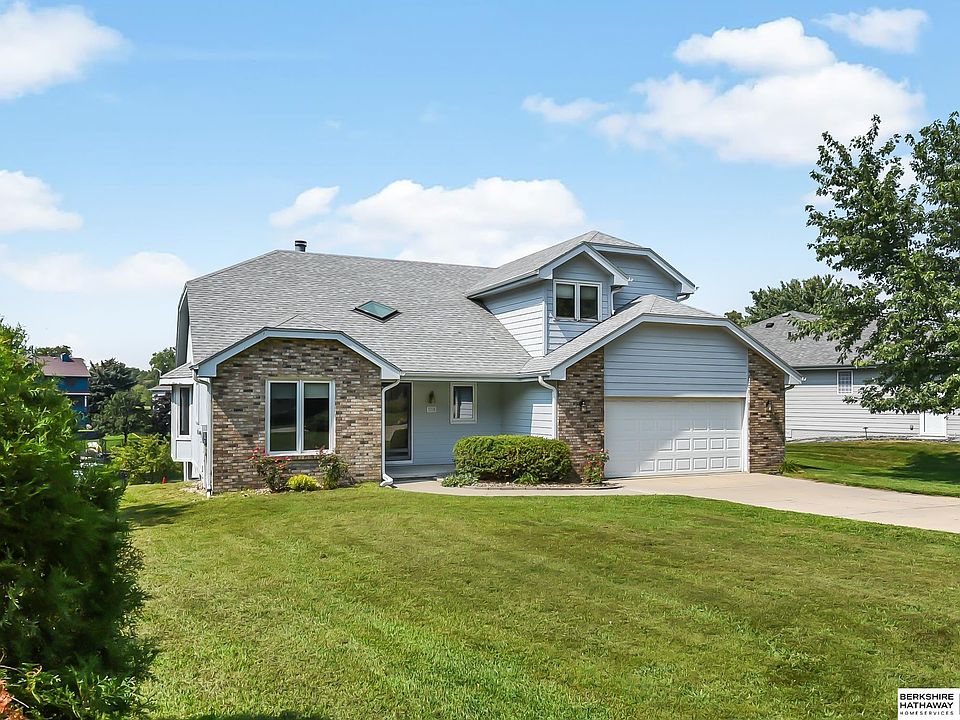 Enjoy the living on the lake within minutes to the city. Conveniently located close to Dodge St, quick access to mall, hospital, restaurants. This fixer upper is waiting for its new owners to give it it's own touch. The home welcomes with gorgeous vaulted ceilings which overview the lake. Snuggle near cozy wood burning double sided fireplace during winter time. Use your boat to enjoy the lake during summer time. The furnace has 2 separate systems on second and first floor to accomplish everyone’s desires. Roof was replaced Wonderful community. Deep 2 car garage. You will find stainless steel appliances, wood flooring, tile flooring, back splash, granite/quartz. Basement is partially finished with rough ins for bar. The primary bedroom is conveniently located on the first floor with walk in closed and large suit with tub and shower. Make it your dream home by choosing your own selections which will satisfy your taste. AMA