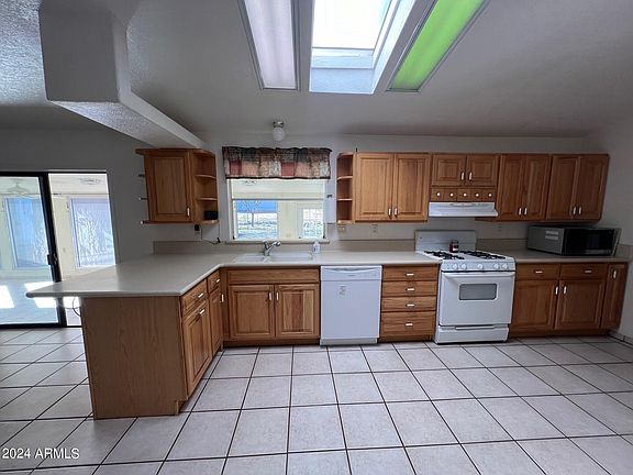Looking for a spacious property with ample shops and amenities? This 2560 sq ft Schulte manufactured home sits on 4.82 acres and offers upgraded windows and a completely tiled interior.AZ room and a family room. The property includes a 30 x 40 garage with a 3-car carport, a 40 x 60 metal shop with a dirt floor, and an additional 30 x 40 shop with a cement floor, totaling 4800 sq ft under cover. Also a 16 x 20 animal pin with a cement floor, perfect for 4H animal projects. The property is completely fenced. With 640 acres of state land across the paved street, this property offers a serene and spacious environment, ideal for working with horses or enjoying tending the Figs, citrus, apple, pear, grapes and the asparagus. No HOA, the whole neighborhood is paved, makes for less dust.