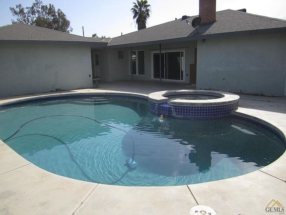 Unique, one family owned, custom built home with a swimming pool in SW Bakersfield. This 3 bedroom, 2.5 bath, single story house sits on a large corner lot on a very quiet street. 2 car garage with opener, covered rear patio, and RV parking. Interior offers tons of storage space, tile and LVP flooring throughout, indoor utility room, and an extra half bath that is perfect for guests and swimmers! Second living space could be used as 4th bedroom, office, or game room.