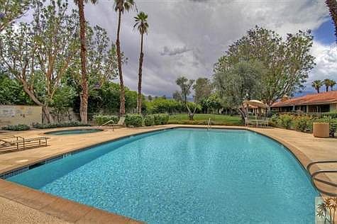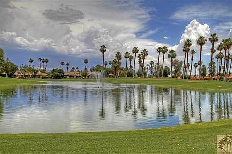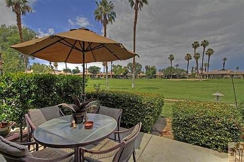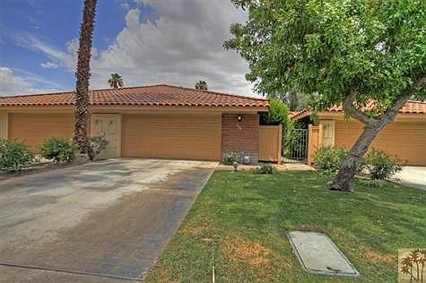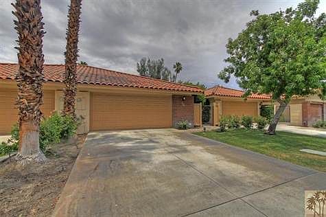 This light and bright Monterey Country Club 300 Plan features 3 bedrooms and 2 baths with expansive fairway views. You'll enter through a lush well-landscaped, private, courtyard to a great room with cathedral ceilings and clerestory windows. The look of the wood impressioned ceramic tile floors, and the elegant wood shutters in the home add to the allure. There is a wet bar in the living area near large sliders to the outdoors. The large patio is perfect for entertaining and the efficient kitchen includes a breakfast area. Close to the community pool and spa for your enjoyment. Monterrey Country Club offers 27 holes of championship golf, 19 tennis courts, pro shops, fitness center and full service clubhouse.