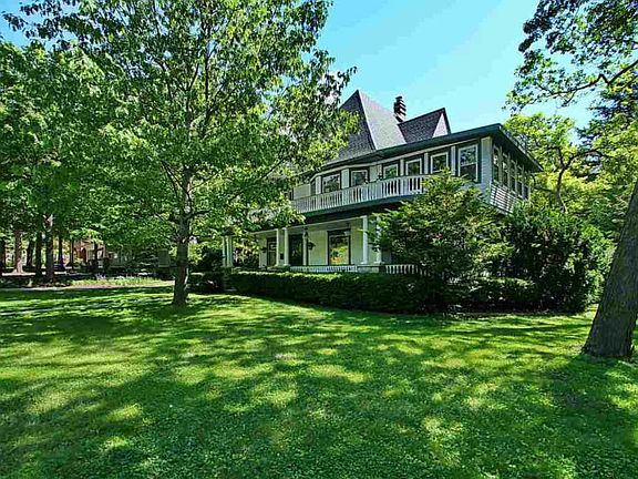 Filled with charm, character warmth, quality construction. Historic home, cared for with love and attention to detail. Carriage house holds 2 cars. Has an unfinished upper level ready to be an art studio, gym or office. New roof will be installed before closing. Custom gourmet kitchen, Thermador appliances, heated floors. 2 MBDs, main floor and 2nd floor, both with heated bathroom floors. 2 furnaces, boiler and forced air. Central AC in sleeping porch and attic. Private driveway. +3-car spaces. Can be B&B.