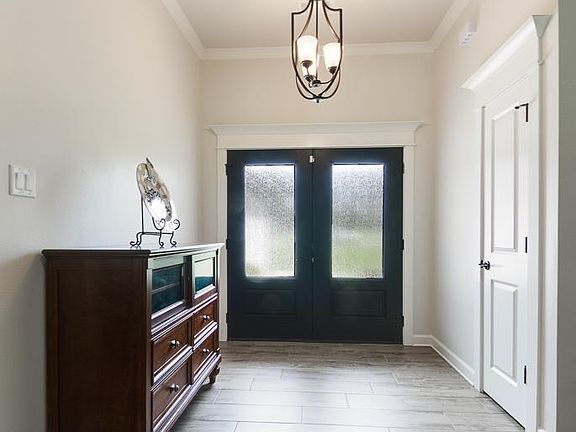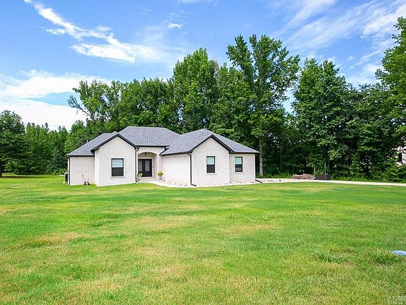 Introducing this beautiful 3 bedroom, 2.5 bath home built in 2023, offering 2060 sq ft of living space on a spacious 1.40 acre lot. Double front doors open into the foyer and large living room with fireplace. Open concept plan, kitchen has island, double ovens, ice maker, custom cabinets with soft close feature and pantry. Wood look tile throughout - no carpet. Primary bedroom is separate from the other two, primary bathroom has walk in shower, walk in closet. Laundry room with sink. A peaceful retreat awaits outdoors on the covered patio that also has a fireplace. Small area fenced in with iron fencing for your pets. Side load garage, safe room/storm shelter. So many extras packed into this home! Don't miss the opportunity to make this beautiful property your own!