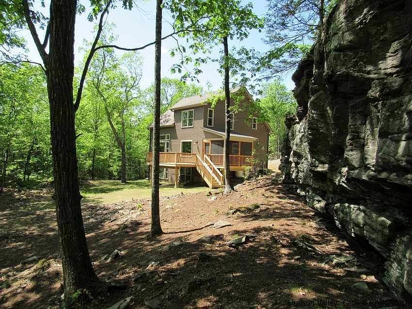 Dramatically sited, this new home could offer some great views with selective clearing. It is a truly a home for all seasons; an excellent weekend retreat but awesome for full time living. This brand new contemporary is just minutes from the village of Woodstock. Clean modern and rustic touches blended seamlessly with the character and charm buyers crave when searching for their upstate getaway in the Catskills. This home is packed with today's high demand home features like a wide open floor plan and super high ceilings on the main level making the kitchen and living area the true heart of the home. Numerous large windows bring the outside in and the floor to ceiling fireplace check off even more boxes for anyone looking to entertain family and friends. First floor bedroom and bath, sweet hickory wide board floors, extra thick walnut stair treads, solid surface leathered granite counters, killer lighting package, solid wood doors, and the list goes on and on. 2 spacious bedrooms and large bathroom upstairs and an amazing finished walk out lower level media or guest suite complete with 4th bedroom or office, large windows with lots of natural light, laundry room and full bath. It's the perfect overflow area for guests with its own entrance to the back yard. Each floor separately zoned with dreamy radiant heat and air conditioning, each floor providing independent living offering the feeling of privacy when needed. Extensive decking, front rocking chair and side screen porches complete the picture perfect setting inside and out. Minutes to virtually every conve