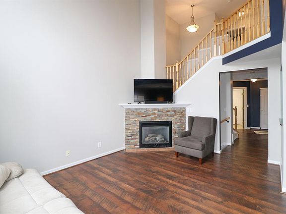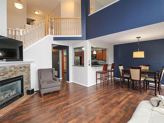 Move right in to this fantastic townhome! The updated kitchen boasts granite counters, tile floors, planning desk & all appliances are included. Durable laminate wood floors! Cozy, corner fireplace! Finished walk out lower level offers bath rough in! Love the view from the loft! Attached 1 car garage! Beautiful pool community! Buyer picks their carpet color!