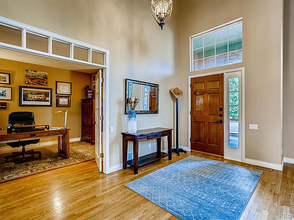 Beautiful Castle Pines Home Backing to Open Space! Large, private backyard with mature landscaping! Finished Walkout Basement with Stunning Finishes! New maintenance free deck allows you to enjoy the wonderful Colorado weather during meals and while relaxing. A lower level brick patio provides another great outdoor space. Beautiful kitchen with hickory cabinets, slab granite counters and stainless steel appliances. The kitchen nook has a bay window with views of the backyard and open space behind. The spacious family room is open to the kitchen and has large windows to allow in wonderful light! Main floor study with glass French doors. Formal Living and Dining rooms provide an excellent space for entertaining. Newer windows! Updated fixtures and hardware throughout! Large master suite with coffered ceiling and updated master bath! Stunning master bath remodel with large frameless glass shower, soaking tub, custom cabinets and slab granite counters! Spacious secondary bedrooms, one which has a vaulted ceiling! The upstairs loft can be easily converted to a 6th bedroom if needed. The finished walkout basement is one of the nicest you will find at this price point. Beautiful knotty alder wood doors are visually stunning and complement the rest of the basement finishes. The basement has a great room, 2 additional bedrooms and a guest bath. The space is perfect for visiting guests or older children. Just 2 blocks from American Academy and Buffalo Ridge Elementary School. 1-year home warranty included! Great neighborhood pool!