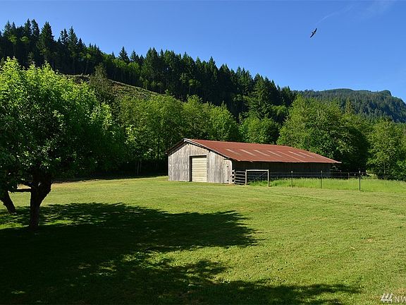 The setting of this home & property are picturesque. Updated mobile on over 53+ acres w. Schooley creek and cattle in the lowlands and hay and barn+ 3 more outbuildings on upper property. Panoramic Views of Mt Rainer, Huff Acre MT and Watch MT, Creek & Cowlitz River Valley. Zoned AGI-Open Space, taxes barely 1K a year. Currently producing income of over 20K a year. Fully fenced with new gates and fencing. Excellent well and water pumping up to 100 GPMGroomed horse trails across street in Forest