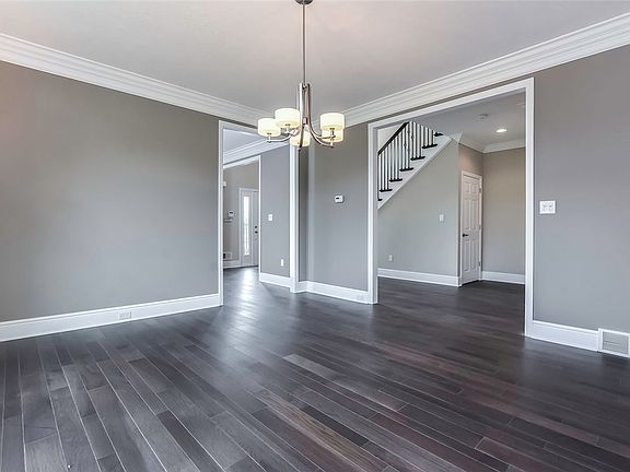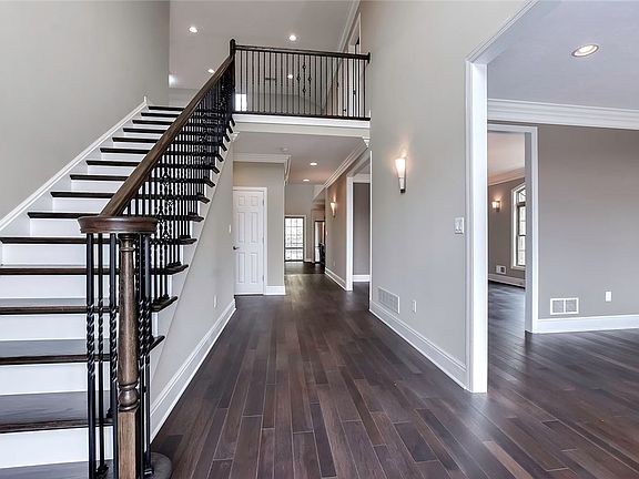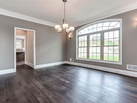 Another masterpiece with outstanding finishes and open space. Random width Hickory flooring flows through the living room, dining room kitchen and great room. The massive entry hall and wide stairs provide a sense of elegance. The formal living and dining room have extensive moldings and huge windows. The kitchen has gorgeous cabinetry and a massive island. The walk-in pantry is close and there is a butler's pantry between the kitchen and DR. The vaulted great room has a wall of windows and the main focal point is the stone fireplace. The first floor master has a double tray, numerous windows & a luxurious bath. The second floor boasts of 3 large bedrooms and 2 full baths. The loft is great for a second family room. There is walk in storage. Off the FR is a covered deck that has direct access to the yard. This a masterpiece and worth a visit.