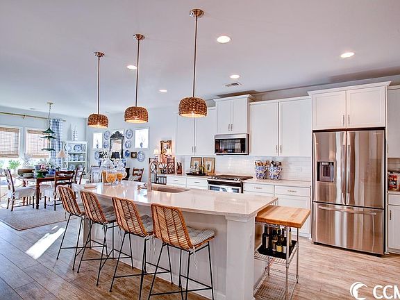 Southern Charm ON THE WATER! Look no further than this beautiful, immaculate, well-cared for home located in Prince Creek, the heart of Murrells Inlet, SC. The Summerlin floorplan is a large, open floor plan concept that features 3 bedrooms, 2 full bathrooms and 1 half bathroom. This home offers 2 bedrooms and a full bathroom on the lower level and the Primary Bedroom along with a Full ensuite Bathroom and a Half bathroom on the Main level. Throughout this lovely home, you will find many windows allowing natural light to beam from wall. There are MANY notable features to mention as well such as LVP flooring in the main living areas including the Primary bedroom, 2 Linen closets PLUS a walk-in closet in the Primary, Natural Gas, upgraded light fixtures, chair railing in the half bathroom, White cabinets, QUARTZ Kitchen countertops, Elevator Shaft available that makes for 2 AMAZING storage closets, additional outdoor storage under the front stairs and in the garage for all your beach/pool gear, FENCED in Backyard, Extended Back Patio & MUCH MORE! At the end of a long sunny day at the beach, enjoy grilling out in your backyard overlooking the large pond while listening to the birds chirp and the soothing sound of the water feature. This community also comes with a LOW HOA featuring MANY amenities such as 2 swimming pools, a kiddie pool, tennis courts, pickle ball courts, half-court basketball court, horseshoes, paved walking trails, open-air clubhouse with wood burning fireplace, air-conditioned bathrooms, etc. all located in a secluded, gated area nearby. Lifestyle is everything and this home is just a short golf cart ride away from Publix, a local pizzeria, bagel shop, nail salon and MORE! This home will not last long. Priced to sell quickly. Inquire today!