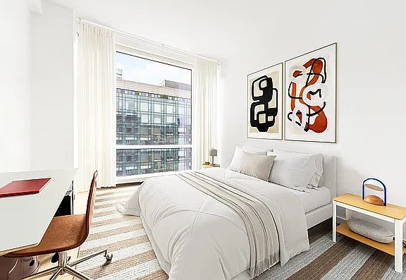 Expansive and bright, 11A is one of the most desirable layouts at The Urban Glass House. The residence features a split 2-bedroom, 2.5-bathroom layout with a home office. Take in the stunning views from the floor-to-ceiling windows which bathe the space in natural light throughout the day from the western and northern exposures. The 10' ceilings enhance the loft-like atmosphere, and an open chef's kitchen features top-of-the-line appliances and a breakfast bar for casual dining. The primary bedroom has an en-suite bathroom with a double vanity, glass enclosed shower, and soaking tub. Additional apartment features include hardwood flooring throughout, central air, and an in-unit washer/dryer. The Urban Glass House is a boutique, white-glove condominium designed by Philip Johnson with interiors by renowned architect Annabelle Selldorf. Amenities include a full-time doorman, fitness and yoga rooms, additional storage, and a bike room. Located in West SoHo, just a block from Hudson River Park, and at the crossroads of SoHo, the West Village, and Tribeca, this Spring Street masterpiece is in the heart of downtown's most fabulous shopping and dining.