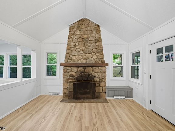 Welcome to this updated, charming home tucked away in Sussex County's most coveted gem, Lake Mohawk. From the moment you drive through this tranquil and picturesque community, you will want to call it Home. The inviting front porch sets the tone for the warmth + character you'll find inside. The living room impresses with cathedral ceilings + stunning stone wood-burning fireplace, balanced by built-in storage and brand-new flooring that flows seamlessly throughout the home. The updated eat-in kitchen is a true highlight, filled with natural light and featuring modern butcher block countertops, stylish new cabinetry, and new appliances. A unique balcony door extends the living space outdoors, where you can enjoy peaceful scenery + even seasonal views of the lake. Two spacious bedrooms, one of which has a loft! The side yard offers ample room for entertaining, gardening, or relaxing in nature, while practical updates such as public water and a Roth oil tank provide peace of mind. Life in Lake Mohawk brings not only serenity but also access to the many amenities this private lake community is known for, including a country club, beaches, boardwalk, clubhouse dining. White Deer Plaza is just mins. away, a beautiful downtown area with European influences, + an abundance of charming restaurants + shops. Whether you are seeking a year-round residence or a weekend retreat, this beautifully updated home combines rustic charm, modern convenience, + the unique lifestyle of Lake Mohawk.