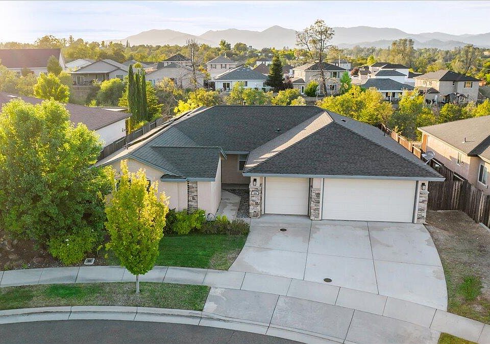 Luxurious Highland Park home in Redding with wide open living spaces, lots of natural light, perfect for entertaining, holidays, and events. Enter through a nice courtyard. This elegant home has 4 bedrooms and 2 1/2 baths, the master suite is large and separate from the other bedrooms. Large open kitchen with island opens up to the dining and living room. Laundry room area with half bath. Solar power and also a gas fireplace for warm winter evenings. This well cared for home already has the inspections completed for the new buyer. Fully fenced backyard backing up to a greenbelt, there are hiking trails and parks all around. This neighborhood is beautiful with mountain views and walking distance to the best schools in the region.