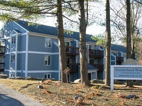 Beautiful condo in desirable Sunderland Woods! This condo is refreshed with new paint and thorough cleaning. This unit is located at the end of the cul-de-sac overlooking the serenity of the woods. Enjoy entertaining in the spacious living/dining combo. The living room welcomes you with a gorgeous slate accent wall and beautiful laminate hardwood flooring. The chef's kitchen is complete with upgraded cabinets, pot rack and appliances. The master bedroom features his and her closets and a master bath. New gas hot water tank in 2014. Convenient in unit laundry. Plenty of visitor parking and easy highway access.