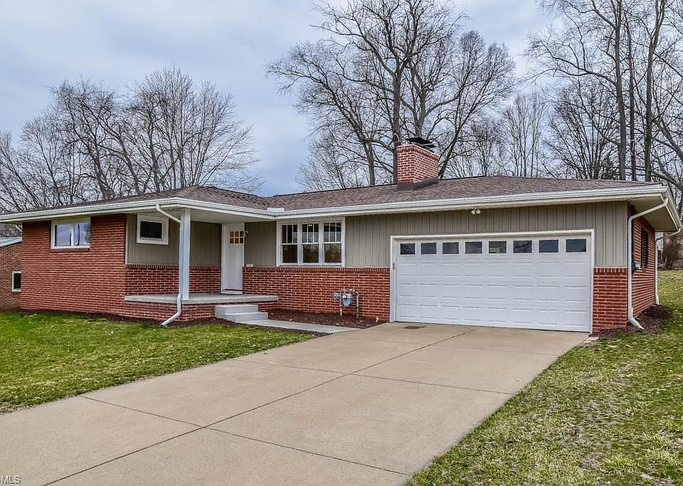Call or text Listing Agent Jose Medina at 330-605-9185 for a private showing. Stunning 3 bedroom, 1.5 bath ranch with a finished lower level! Everything here is new! New hot water tank, furnace, A/C, windows, new roof, chimney, new water resistant vinyl tile flooring, new bathrooms and more! Prepare your favorite dishes in the gorgeous kitchen with solid surface countertops, tile backsplash and a stainless steel dishwasher. It opens to the dining room with a new sliding door to the backyard. The sun-filled living room boasts a beautiful fireplace to keep you warm all winter. Down the hall, the master suite offers a walk-in closet and a private half bath. There are 2 additional bedrooms and a full bath with new shower surround, tub, toilet, vanity and ventilation fan. Enjoy extra living space on the lower level including a rec room and a family room with a fireplace. Large storage rooms downstairs, too! This home has wonderful curb appeal with a lovely covered front porch, covered back patio and 2-car attached garage. A must-see property!