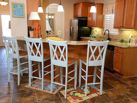 - Interior: Ceiling Crwn Molding, Lighting Recessed, Washer/Dryer Hookup, Woodwork Painted, Floor Tile, Breakfast Bar