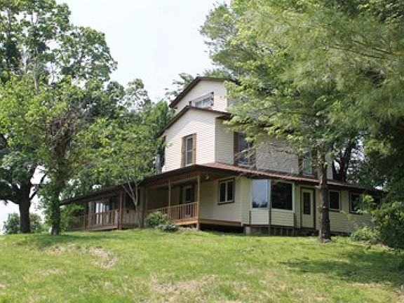 This is just one of those homes you HAVE to see!! An artistic mix of old and new. Located on six acres, the original farmhouse still has that welcoming feel but with great updates! Beautiful covered porch leads to the sitting room, kitchen and dining areas with ceramic flooring. Gorgeous wood beams show off the vaulted ceiling with skylights. The wood stove provides an efficient heat source or use the heat pump which is only a couple of years old. Family room has it's own heating and cooling system. Master bedroom on 1st floor with walk-in closet and large bathroom with laundry area. Living room has wood flooring and opens to the enclosed porch with a bay window. Another full bathroom on 1st floor. 2nd level has two bedrooms and another bathroom. The 3rd level contains light filled space for a studio or another bedroom. Roof new in 2009. On the property you'll find a barn, partially fenced yard (owner had goats at one time!), a chicken coop and pond!