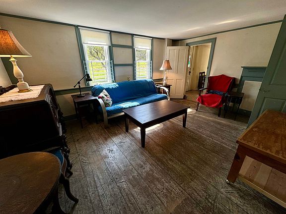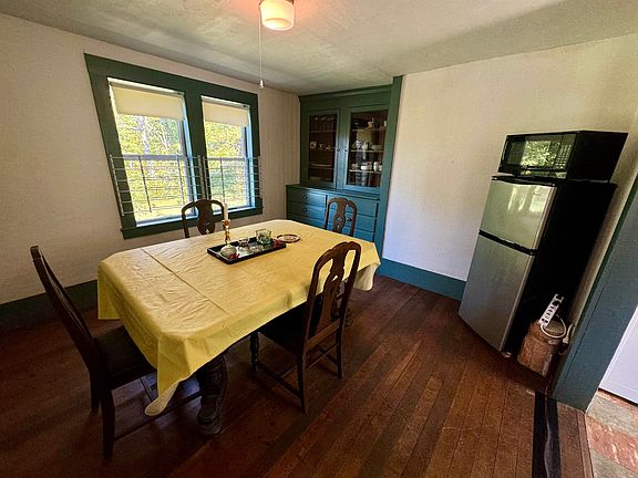 Circa 1850 Cape with kitchen, dining room, living room, one bath, two bedrooms and two bonus rooms, all that could accommodate a family or provide space for guests. With 47 acres to work with, there’s plenty of room for farming, gardening, and enjoying nature. The combination of open hay fields, pasture, and mixed woods offers great opportunities for diverse agricultural activities and wildlife observation. The historic buildings add character, they are currently usable and with some TLC, they could be transformed into lovely spaces. The presence of both a drilled well and a dug well is a fantastic bonus for water supply, especially for the barns and gardens. A new septic system was installed a year ago. Sit outside and enjoy the view to the center of Corinth with the church steeple visible through harvestable pines on the hill above Meadow Brook and the hamlet of Goose Green. Being sold “as is”. Most furnishings included. This property is the perfect spot for someone with a homesteading spirit to create a thriving farmstead!