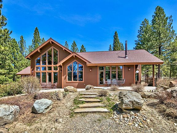 Welcome to your dream home in the desirable Valley Ranch Estates! This stunning property boasts 3 bedrooms, 2.5 bathrooms, and a 4 car garage, all situated on a sprawling 5.24 acres of peaceful land. With 3,227 sqft of living space, this home offers plenty of room for you and your family to spread out and enjoy. As you enter through the custom hand carved wood front door, you'll be greeted by the grandeur of 25” ceilings and an abundance of natural light streaming in through the large windows. Enjoy the inviting kitchen area perfect for entertaining and the natural oak hardwood floors add a touch of warmth and elegance to the space. The propane hearth gas stove is perfect for cozying up on chilly evenings, while the double refrigerators make entertaining a breeze. The walk-in master closet provides ample storage space, while the walk-in storage space above the large garage is perfect for storing all your extra belongings. Outside, you'll find a storage/wood shed and step onto the back patio for a breathtaking view of the peaceful mountains and meadows. Take advantage of the bocce ball court and horseshoe pit in the serene backyard. This home truly exudes pride of ownership and is located in a peaceful area that you'll love coming home to. Don't miss your chance to own this stunning property. This home is just minutes away from charming Graeagle, a quick 20 minute drive to the majestic Lakes Basin and an hour away from Reno and Truckee.
