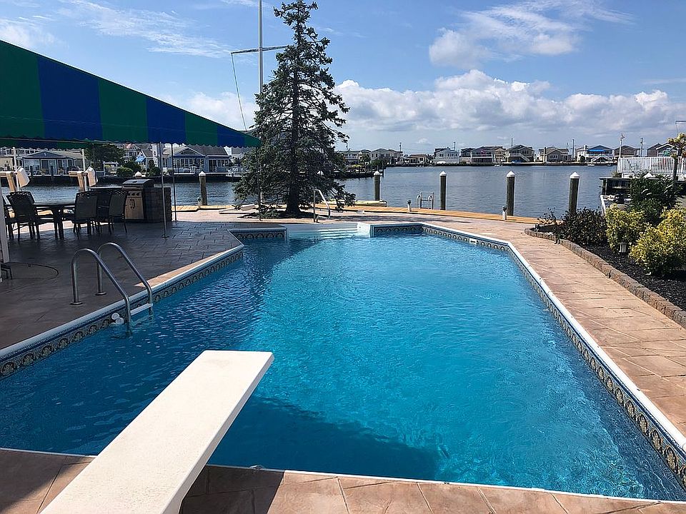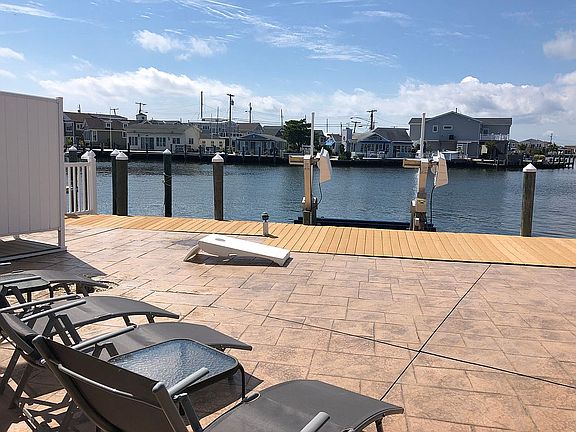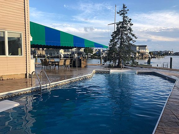 This property features approximately 90' of bulkhead on an almost open bay. home is ideal for enjoying the outdoors on the water featuring a beautiful built-in pool, permanent awning, double outdoor showers, large storage shed and boat lift. Set up with plenty of space for large family gatherings outside and in. The home has an updated kitchen and wide open floor plan for dining and entertainment. The second floor has a master bedroom with views of the bay, large updated master bath, laundry room, plus 3 additional bedrooms and family bath. This home is equipped to sleep up to 16 people, perfect for large family gatherings and multiple weekend guests. Lastly, the home has a strong rental history with peak season rentals of $6,000/week.