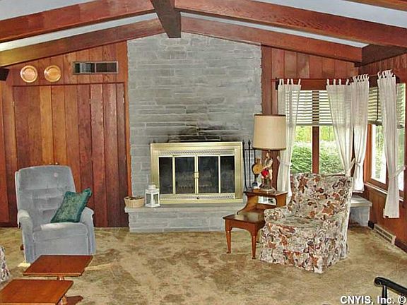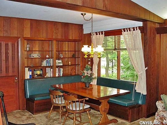 'Cool Mid-Century Modern Ranch!' Newer roof, electrical panel, furnace & C/A. 'Beveled' glass front door opens to wall of windows in living room. Indirect lighting on valance above windows & built-ins make a special room. Kitchen w/all appliances (Cool stove & it works!). 3 large bedrooms (hardwoods under carpet). Large family room addition with its own furnace. fireplace & 50's custom breakfast nook & table. Indirect lighting. Walkout to oversized private home site. SU 100% financing area.