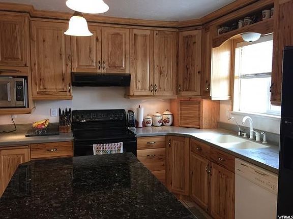 AWESOME UPDATED HOME IN HYRUM!!! This home features 5b/2b, an updated custom kitchen and updated bathrooms, amazing views of the city, RV pad on side of home, covered patio in the backyard..perfect for those summer BBQ's, 2 fireplaces, garage is loaded with storage cabinets and so much more.. Everything you need for your next home all bundled up in this home! Buyer/Agent to verify all information
