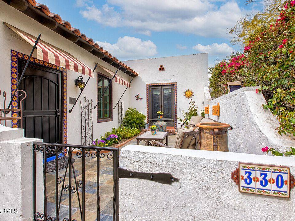 What a beauty! This Spanish Colonial home, located in the coveted Willo Historic District, is known for its fantastic curb appeal and one of the most charming front courtyards in the neighborhood. With coved ceilings, hardwood floors throughout, great natural light and beautiful architectural details, this home is easy to love. Beautiful living and dining spaces. Two bedrooms have French doors that lead to charming patios. There's also a finished 300-sqft studio (not included in total square footage) attached to the garage, with plumbing and AC, that could be a great space for an office or guests. Walk to restaurants, bars, museums and light rail. This property has it all!