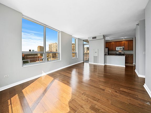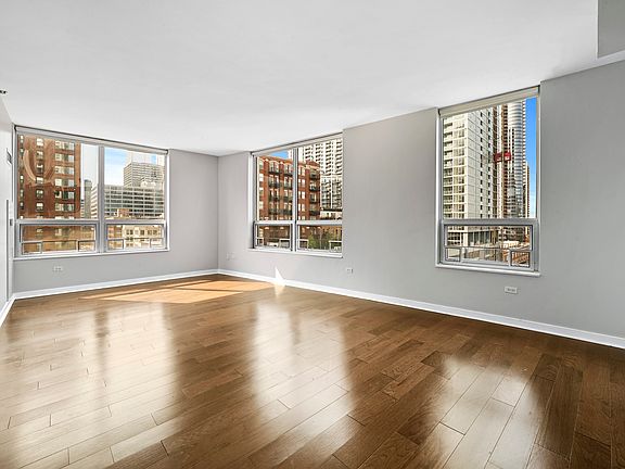 This is a contemporary urban home in a highly desirable River North Boutique Highrise. Amazing location! There are 3 full bedrooms and 2.5 bathrooms. This is a corner unit facing southwest, so you get panoramic views of the Chicago skyline as well as lots of sunshine. There are two large balconies for all your outdoor enjoyment. Features include: hardwood floors in the living area and hallways, open gourmet kitchen with 42 inch cherry cabinets, new countertops, GE Stainless Steel appliances, master bath with soaking tub, plenty of closet space throughout. The Master suite has its own balcony, two sets of massive walk in closets for him and her, and beautiful views. 2 side by side parking spaces available @ $275 each.