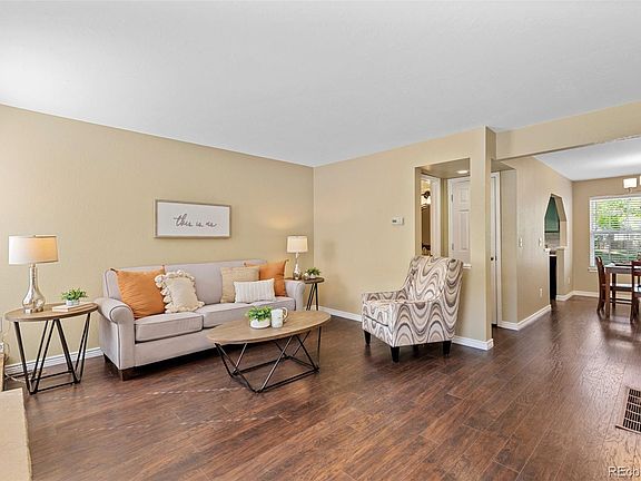 Welcome to this light and bright stylish Southbridge townhouse! Step through the front door and you are greeted by a newly tiled entryway and new laminate flooring and trim throughout the main level. Enjoy a cozy living room with a gas fireplace and dining room area off the kitchen. The kitchen boasts a new sink, new countertops, new subway backsplash, new range and microwave (2023), and chic painted cabinets. The main level powder room has new tile, new vanity, new toilet, new mirror, light fixture and crown molding. Walk upstairs to TWO owner suite bedrooms, each with their own attached full bathroom, new paint, new carpet, and updated blinds. Come into the lower level through your own attached 2 car garage, into the laundry area and storage/utility room. The washer and dryer are also included! The HOA includes a pool, clubhouse, hot tube, sewer and water bills, and building maintenance. The location is unbeatable, right across from the highline canal trail system, a short drive to the Streets of Southglenn and easy access to 470 and Sante Fe. Schedule your showing today!