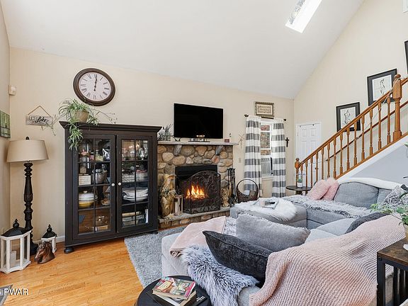 Escape to serenity in this stunning chalet in Masthope, nestled in wooded surroundings with breathtaking year-round views of the lake! Imagine sipping coffee on your deck facing the lake, or having dinner in your sunroom, surrounded by nature's splendor, or gathering 'round the fire pit as the cotton candy sky melts into a tranquil sunset. With ever-changing colors in the sky, every day is a masterpiece.This beautiful chalet features an open floor plan on the main level, perfect for entertaining, featuring a spacious living room, kitchen, and dining room, all seamlessly connected. The sunroom is the perfect spot to enjoy your morning coffee or watch the stars twinkling at night. The living room has a wood burning fireplace to keep you cozy during the winter. Two cozy bedrooms are conveniently located on the main level.Upstairs, the primary suite awaits, complete with a spacious walk-in closet and a large bathroom. There is also an open loft overlooking the lake, which can function as an extra sleeping space, office, or reading nook. The lower level offers additional hangout space, a bonus room that can be a guest room, and a large utility room with laundry facilities and extra storage.Nestled in the heart of Lackawaxen, PA, Masthope Mountain is a picturesque community that embodies the perfect blend of natural beauty and tranquility. This mountain community offers a unique blend of outdoor recreation and relaxation, set against the stunning backdrop of the Pocono Mountains.Residents and visitors alike can enjoy the community's scenic trails, lakes, and forests, providing endless opportunities for hiking, fishing, and exploration. The community's rustic charm and natural beauty make it an ideal destination for those seeking a peaceful retreat from the hustle and bustle of city life.