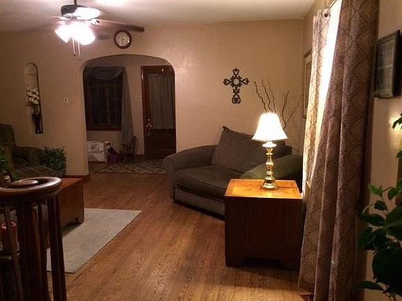 Large two story home with log burning fireplace. Beautiful hardwood floors throughout. Gorgeous wood work and stairway. 4 spacious bedrooms, remodeled bath. Garage has been converted to an additional first floor room - could be den or 5th bedroom. Corner lot