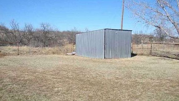 Perfect for a weekend getaway - located at Lake Kickapoo in Archer County, Holliday, TX 76366. This 2 bedroom 1 bathroom cabin has 1,056 sq ft, a large eat-in kitchen, large living room and an extra storage room. Metal roof was added in 2011. Septic was updated in 2003. Water heater was replaced in 2010. The furnace is propane. Water is supplied by Wichita Valley. The yard is fenced and contains a storage building and a clothes line. The carport is single width, but you can park your boat at the back end and have plenty of room for your vehicle. Unobstructed views of Lake Kickapoo right across the road with fishing off of the pier or just watch the ducks and geese play. The lake lot lease is $828 per year and can be renewed upon purchase for 25 years w/an automatic renewal for another 25 years. The school bus for Holliday school district picks up in the neighborhood.
