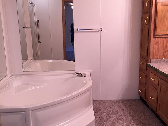 Very nice double-wide, sits on a large lot with fenced-in rear yard on a quiet, dead-end street in Exeter School District. Off -street parking guarantees you ample parking spaces plus a large 16 x 24 detached shed with barn style door, great for working on cars, woodworking or just additional storage, has electric and cemented floor. Sturdy ramp entrance to front door and enter into large, bright living room area. Open floor plan leads to dining area and large oak kitchen with plenty of windows and lights. All appliances are fairly new and hardly used. Master bedroom has large walk-in closet and private bath, plus walk in shower and soaking tub. 2 additional bedrooms and another full bath on other side of house. Utility room for laundry facilities and storage. Small deck off back door that leads to private rear yard. New carpet and flooring throughout, freshly painted.