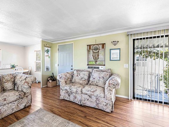 Introducing a charming Rosamond home nestled in the Desert Oasis mobile home park that has a pool and tennis court to enjoy! This mobile home features 1 bedroom and 1 bathroom, offering a cozy living space. The property boasts beautiful tropical landscaping with palm trees and various fruit trees, creating a serene and private atmosphere. Inside, you'll find laminate flooring throughout and an open floor plan, providing a seamless flow. This home presents a great opportunity for a small starter home or an investment property to add to your portfolio. Located at the end of the street, it offers additional privacy with no neighbors to one side.