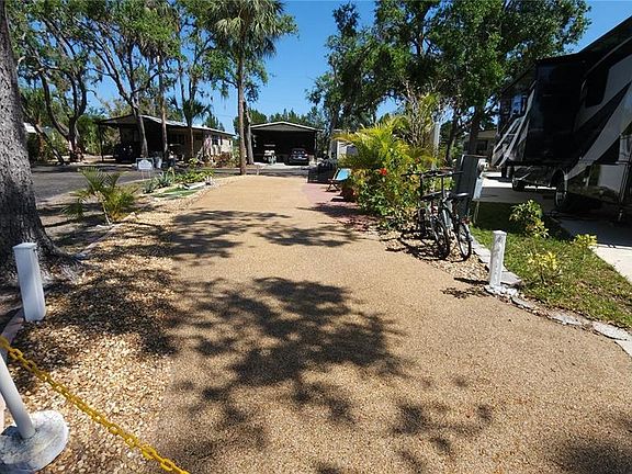 UNIQUE, LANDSCAPED RV LOT IN ACTIVE 55+ COMMUNITY! This pull-through RV lot is located in SUGAR CREEK RESORT. Nestled in the back of the community, this quiet spot is on a curved end lot. Pebble treatment on the pavement and a 10' x 26' patio add to the charm. There is a granite topped buffet table which enhances your outdoor experience. Included with the lot is a grill, furnishings, and a cabinet shed where you can store your gear. HOA fees of $442 each quarter include water, sewer, trash, and grass mowing. Amenities include heated pool, clubhouse, tennis, pickleball, shuffleboard, workshop, laundry and shower facilities. Don't miss out on this slice of Florida paradise.