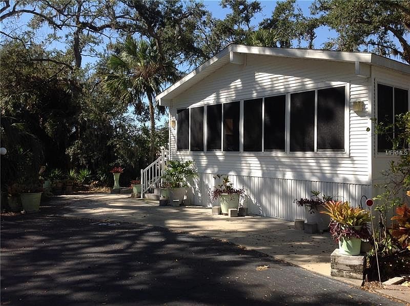 ENJOY SPECTACULAR SUNSETS from the wall of windows in your living room while you look down on a fantastic view of tranquil Glen Creek. This top quality Chariot park model with custom addition sits in a beautiful location in friendly Sugar Creek Resort. The two bedroom, 1 bath home has a spacious floor plan. The welcoming 204 sq. ft. Florida room with another wall of windows adds to the charm. The addition is built with 2x6 construction and has tinted windows and high quality shades. Ample closet space with built-ins complete the master bedroom. The second bedroom could also be used as an office with another stunning view of the creek. This home has vaulted ceilings and six ceiling fans. The home is situated on a prime cul-de-sac location and the exterior is landscaped with Florida-friendly plants, mature trees, and has an open patio to relax and take in the views. This is a low maintenance and energy efficient property. Average electric bill is only $55.00 per month! There is a huge amount of easily accessible storage under the unit due to the complete concrete slab. This pet friendly home is light, bright, move-in ready, and priced to sell! The community boasts a beautiful heated pool, tennis courts, clubhouse, workshop, shuffleboard courts, laundry facility, and an active social calendar. The low $305.00 per quarter HOA fees include water, sewer, trash, and lawn care. Don't let this beauty pass you by!