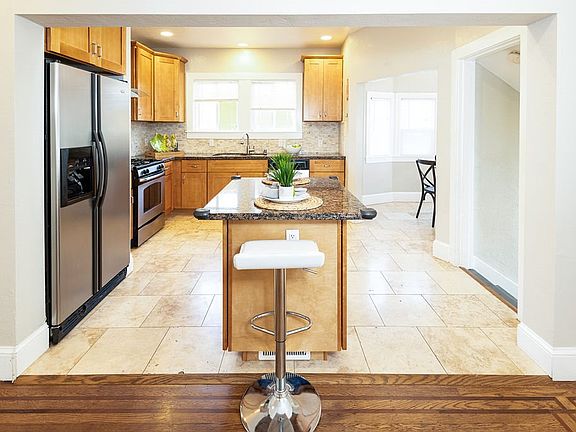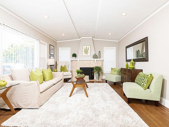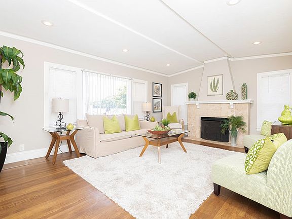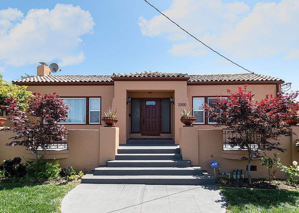 Calling all urban farmers. This is a spectacular opportunity with a large back yard with mature fruit and nut trees plus space for vegetables and berries. The home was previously a children's Day Care with an outside play area and room to roam. The home has been loved and staged beautifully. The entrance is gated for privacy. The proximity to transportation and freeway is a stone's throw away. This sturdy 1662sqft Mediterranean style home has updated windows and wood burning fireplace. The unique features are an enclosed porch sunroom to enjoy viewing the garden, and a large open floorplan with combined kitchen and dining room. The three bedrooms are ample sized. Two full bathrooms accommodate family and guests. The home also boasts of a large unfinished basement for storage or expansion possibilities. Step away from the busy streets into your own private oasis.
