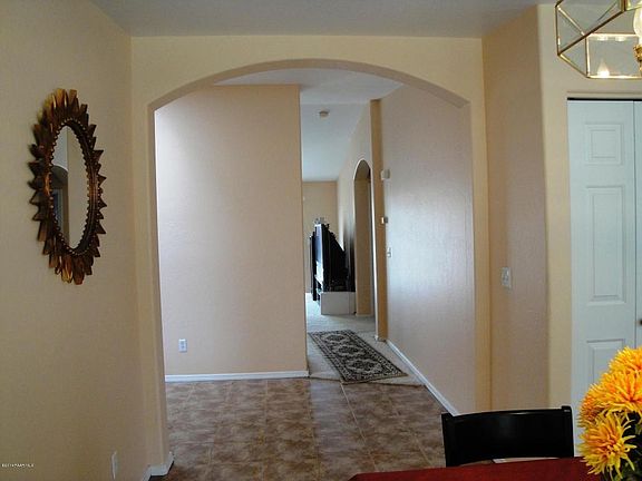 Charming home with bay windows in the front dining area, wood burning fire place, large open tiled entry way, tile flooring in wet areas, split floor plan, 2 car garage, bright large sliding door onto covered patio, large master bedroom, 2 bedrooms on other side of house, covered patio, fenced in yard, large side yard for additional bldg. or park a boat, views of Granite Mtn. & Thumb Butte, within walking distance to Frys & other stores, great location, can have RV or boat, move-in ready, don't miss this one!