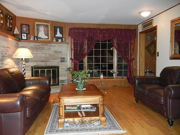 Lovely country home with all new heat ducts, furnace, water heater & electrical panel. It has central air, 2 fireplaces, paved driveway, water softener & 3 living areas. 10' x 20' addition to the Master BR was added in 2000 making that room 22 x 12 with its own full bath & jaccuzzi bathtub. 2 bay windows give lovely views of the courtyard/patio, gazebo, the surrounding woods & farmland. Maple hardwood floors in the living/dining room.