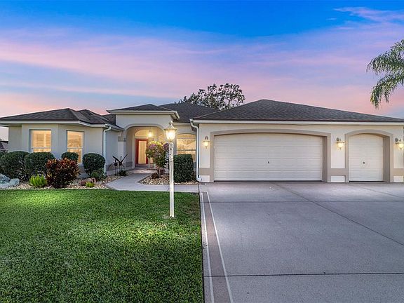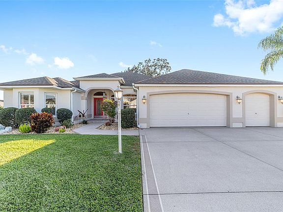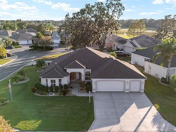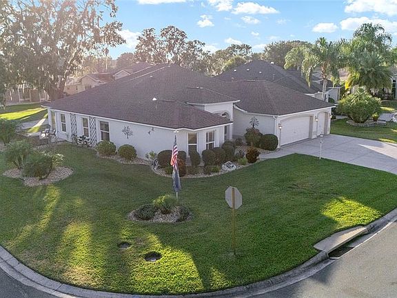 |The BOND is PAID on this LOVELY EXPANDED GARDENIA, with an extra deep golf cart garage in the highly sought out village of Glenbrook. Located on an oversized, PROFESSIONALLY LANDSCAPED corner lot, this IMMACULATE home is just waiting for its new owner! The spacious, open concept interior is light and bright and offers a 2' expansion to the living room, guest bedrooms, guest bath, and the lanai! STACK-BACK glass sliders open from the living room area to the screened lanai. Crown molding throughout. Plus, remote control shades! No direct neighbors behind and does have a peek-a-boo view of Glenview golf course. A beautiful brick paver side patio makes for a great spot to relax or BBQ. The home has neutral tile throughout the kitchen, utility room and guest bath. Luxury vinyl plank in the living room and dining room as well as the master bedroom. Carpet in the 2 bedrooms. The kitchen offers fresh bright cabinetry with crown molding, QUARTZ countertops, plantation shutters, a space saver microwave, newer gas range and refrigerator, as well as pull out drawers. The master bedroom provides access to the screened lanai and to dual walk-in closets and a master bath with double sinks, a vanity area and remodeled shower. The guest area of the home features 2 expanded bedrooms, (front bedroom with bay window does not have a closet), along with an expanded guest bath with a tiled shower/tub combination. The driveway is also expanded and is wide enough to park 6 cars! Storage options include a secret James Bond style climate-controlled room in the garage as well as free standing metal lock and key storage containers. This home has an inside laundry room with Maytag washer/dryer, sink and more storage. Also, don't worry about the big-ticket items, A/C replaced in 2024 with a Trane, and ROOF was replaced in 2021. The Village of Glenbrook is ideally situated near Spanish Springs and Lake Sumter town squares. Saddlebrook Recreation Center along with 2 executive golf courses, an adult swimming pool, 4 softball diamonds, Polo Fields and Glenview Championship Golf and Country Club are just minutes away! Easy access to 466 with abundant shopping, dining, banking, medical facilities, and the new COSTCO! Call today to set up your private showing!