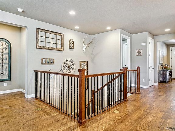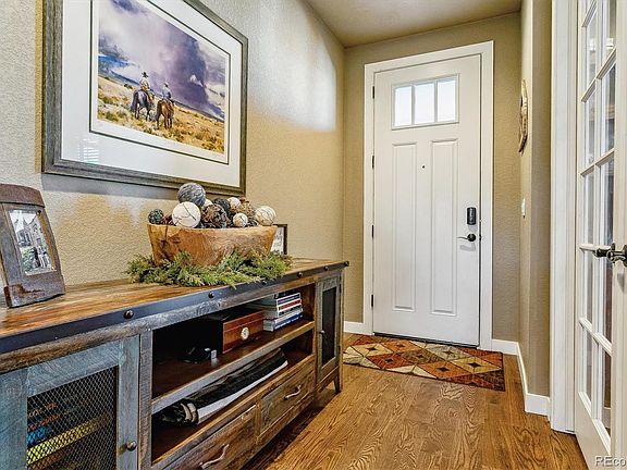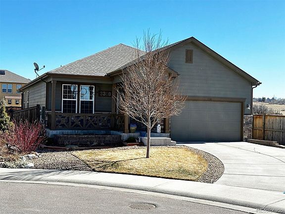 Look at those mountain views! Enjoy looking at the "rock" and Pikes Peak every time you wake up in this beautiful ranch. Welcome home where you will have everything you need, and the convenience of the central Castle Rock location! Walking in, you are greeted with newly refinished gleaming hardwood floors that run throughout the main floor living areas. The spacious office is perfect for your work from home set up. Custom feature wall & french door entry with hardwood floors. Chef's will delight with the gourmet kitchen equipped with top-of-the-line Kitchen Aid appliances, including a 5-burner gas stove, large vent hood, under cabinet lighting, leathered granite counters and walk in panty. The open concept layout is perfect space to entertain or just rest and relax. Family room fireplace complete with barnwood wall, chunky wood mantle, built in bookshelves & views to the outdoor living space. The large, covered patio is perfect to enjoy year-round. The extended outdoor living space includes a built in firepit and "boardwalk". Low maintenance yard with drippers for all of your annuals & perennials. The primary suite looks out to the southern side of the property & includes en suite primary bath. You will fall in love w/the oversized shower w/custom tile, 2 separate linen closets, huge walk-in closet & dual vanities. Completing the main floor is laundry storage cabinets & powder room. The finished basement is ideal to enjoy as another family room, rec room or flex space. There are 2 additional bedrooms downstairs along with a full bath. The utility room has plenty of storage and is currently used as a workout gym. No need to look anywhere else, you are home!