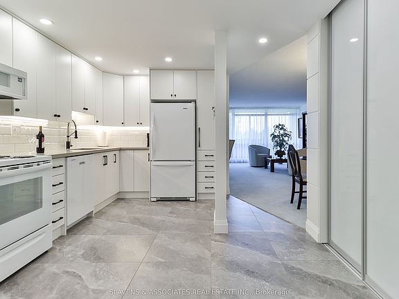 Stunning Renovated Condo in Prestigious Tridel Residence. Welcome to Unit 403 at 3300 Don Mills Rd, a beautifully renovated 2-bedroom, 2-bathroom corner suite in an exceptional Tridel residence. Immaculately maintained by its original owner, this condo boasts over $120,000 in professional renovations, blending modern elegance with exceptional craftsmanship. From the moment you step into the foyer, you are welcomed by custom wall paneling that flows into the kitchen and dining area, creating a sophisticated and inviting space. The kitchen (2023) is a true centerpiece, featuring gleaming white cabinetry, quartz countertops, a custom backsplash, and an integrated wine rack wall, perfectly suited for both everyday living and entertaining. The gleaming white appliances add a sleek, modern touch that will impress anyone who steps inside. The expansive open-concept living and dining area offers ample space for two distinct seating areas and is bathed in natural light from the oversized floor to ceiling windows. The space leads seamlessly to a huge private balcony, providing an ideal setting for relaxing or hosting guests. The primary bedroom includes a walk-in closet and spa-inspired ensuite (2022), while the main bathroom (2021) features a curbless walk-in shower, combining style and accessibility. A unique benefit of this home is the inclusive maintenance fees, covering water, heat, electricity, cable TV, and internet, making it truly hassle-free. Enjoy resort-style amenities such as an outdoor pool, fitness centre, tennis courts, sauna, party room, and a security guard all within a building known for its quality and professional management. Located just minutes from Fairview Mall, Don Mills subway, public transit, top schools, and with quick access to Highways 404 & 401, this condo offers an unbeatable combination of luxury, location, and lifestyle.