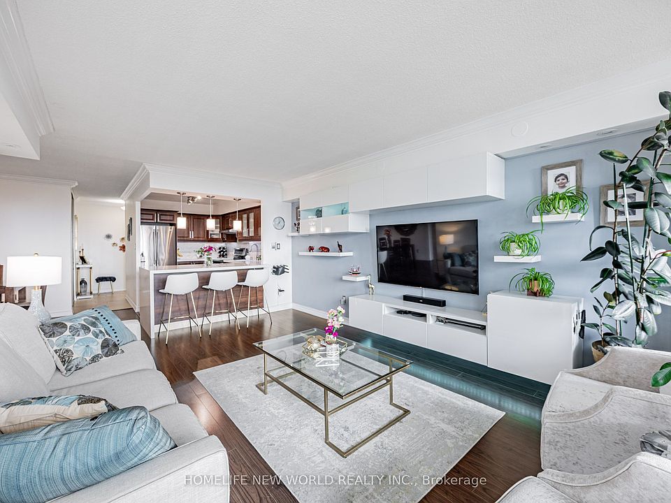 Absolutely Stunning! Rare 3 Bedroom, 2 Bathroom South-Facing Corner Suite With Breathtaking, Unobstructed Views Of The Toronto Skyline & CN Tower. Open Concept Layout Features Crown Moulding, Elegant Pot Lights & Quality Finishes Throughout. Gorgeous Kitchen With Quartz Waterfall Countertops, Porcelain Tiles & Stainless Steel Appliances. The Main Bathroom Has Been Fully Renovated, And Pride Of Ownership Shines In Every Detail. Rare Offering With Three Parking Spaces(Including One Tandem)! Maintenance Fees Include Rogers 1GB Internet, TV Cable, Hydro & All Extras. Sun-Filled Home In A Prime Location Minutes To Fairview Mall, 401/404, Sheppard Subway, Parks &Excellent Schools. Easily One Of The Finest Units In The Building A True Gem For The Lucky Buyer. $$$$ in upgrades incl. open concept kitchen with new cabinets, quartz counters, renovated bath, crown moulding, pot lights, built-in storage, balcony upgrades, upgraded breaker panel. Truly pride of ownership throughout.