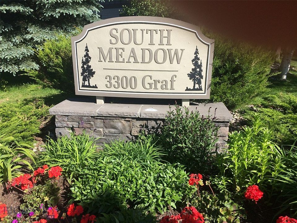 This is a monumental opportunity to own a luxury condominium in the desirable Southside location of the “Last Best Place” Bozeman, Montana. Only five min. to the popular Downtown Area and a few min. to Montana State University. It is an easy drive of only 40 miles to the “Best Skiing in America” – the Big Sky Ski Resort and only 16 miles to Bridger Bowl. These duplex style condos in South Meadow are built by quality LeClair Construction, and it shows! Excludes two light fixtures: 1-Foyer and 1-Kitchen. This condo has a private deck overlooking a wooded open area and is close to a famous trail system. The Owners have spent thousands on updating the hardwood and porcelain flooring, the granite counter tops, the A/C, etc. The 2,118 sf open floorplan has 3 Br/2 Ba and an attached double garage.