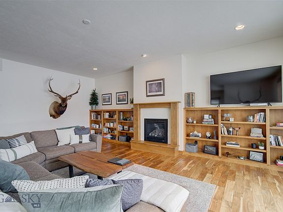 Premier South Meadow Condo! Enjoy hardwood floors throughout, tall ceilings, and wonderful southern exposure in this desirable southside Bozeman location. Two bedrooms plus a den that could be converted into a bedroom with closet and french doors. Open living, dining and kitchen with stainless steel appliances and countertops. Gas fireplace with built in bookshelves on either side. Spacious primary suite with walk in closet and full bath, 2nd bedroom is an en suite with three quarter bathroom. Wide hallways and plenty of storage give this home a great feel. Backs to park space with easy access to the trail system.