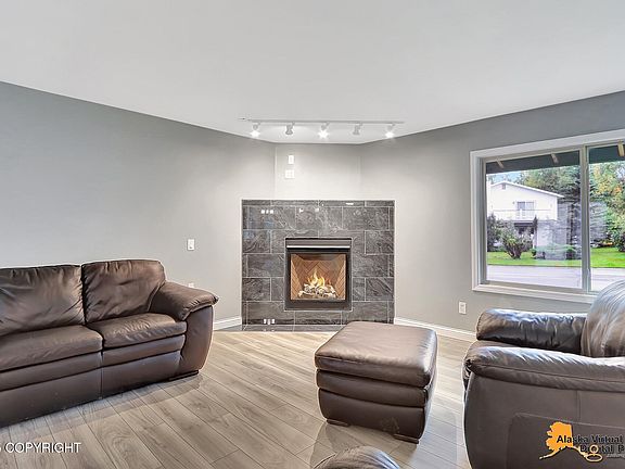 Beautifully updated ranch home in sought-after Turnagain View Estates. This home has been thoughtfully remodeled with a modern open-concept floor plan that connects the kitchen, dining, and living spaces. The brand-new kitchen showcases fresh cabinets, countertops, appliances, lighting, flooring, and paint, creating a sleek and functional centerpiece for the home.The living room features a new gas fireplace with tile surround, complemented by updated flooring and fresh paint throughout. Down the hall, you'll find an updated full bathroom, three comfortable bedrooms, a primary suite complete with a private bath and walk-in shower. Additional upgrades include a high-efficiency combi boiler installed in September 2025. Lots of new plumbing lines, and baseboard heaters in the dining and living room. The fenced yard is perfect for pets or outdoor enjoyment and includes a nicely sized storage shed. A two-car garage provides plenty of parking and storage. Located in a desirable neighborhood with excellent schools, this home combines modern updates, practical amenities, and an ideal setting, making it move-in ready for its next owner. No HOA dues!
