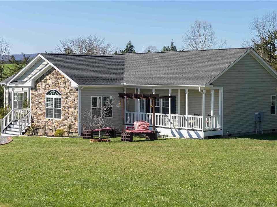 This spacious and open home offers the best of both worlds! Located just 1 mile north of Harrisonburg off of Harpine Hwy, you'll find yourself in a private and peaceful setting and yet only minutes away from every city amenity. And the home is modern and open offering over 2500 finished square feet all on one level. The kitchen offers quality cabinets, granite counter tops and an expansive breakfast bar and it completely opens to the dining room and generous living room with fireplace. You will be surprised by the space of the master suite, bath, and closet. Located on over an acre with a running stream at the back and amazing views, you really can have it all!