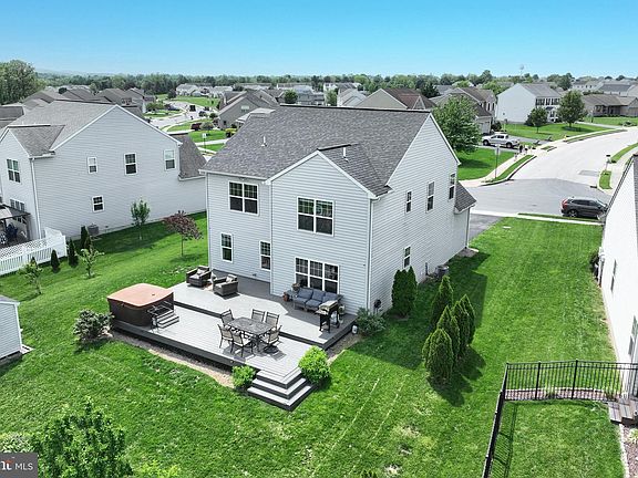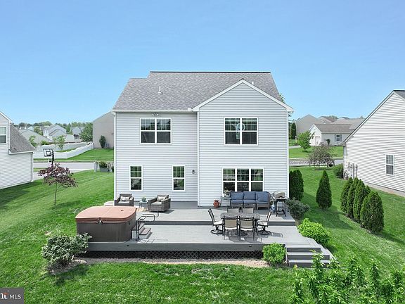 Welcome to Your Dream Home in Ashley Farms! Tucked away in the sought-after Ashley Farms community, this spacious and thoughtfully upgraded home features 5 bedrooms, 2 full baths, and 2 half baths spread across three beautifully finished levels. Step inside to gleaming hardwood floors that lead you through an inviting foyer into a bright, open-concept kitchen. The kitchen boasts white cabinetry, granite countertops, a stylish tile backsplash, stainless steel appliances, and a large center island—perfect for casual dining and gathering. The adjacent dining area opens onto a large Trex deck, ideal for outdoor entertaining. Upstairs, you'll find four generously sized bedrooms, including a stunning primary suite with vaulted ceilings, a 6x10 walk-in closet, and a spa-inspired ensuite bath featuring dual sinks and a walk-in ceramic tile shower. The finished lower level offers incredible versatility with a cozy family room and built-in bar. This level also offers a flexible space that can serve as a home office or fifth bedroom, featuring a scape-well window that brings in plenty of natural light. A secret storage room, cleverly hidden behind a built-in bookcase, adds a fun and functional bonus. A half bath is also located on this level, with plumbing in place to convert to a full bath if desired. Enjoy your outdoor oasis complete with mature fruit trees, a fenced vegetable garden, and a 10x15 shed—all backing to a tranquil water retention area for added privacy. This move-in-ready gem offers the perfect blend of comfort, space, and upgraded features—ready to welcome you home!
