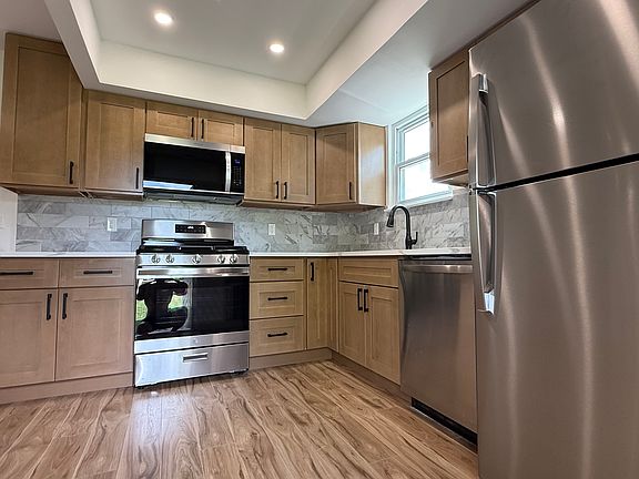 Fully Remodeled 2 Bedroom 1 Bathroom Apartment in Highly Desirable Bensalem/Neshaminy Valley Brand new kitchen with Quartz countertops, stainless steel appliances, soft close cabinets, dishwasher, and garbage disposal Recessed lighting throughout Brand new flooring Ceiling fans in bedrooms Fully redone bathroom with high end tile, vanity, medicine cabinet, lighting, etc Plenty of closet space Extra storage outside Cement patio Large shared backyard 2 driveway parking spaces Central Air and Heat Tenant pays all utilities: sewer, water, trash, gas, electric, internet, lawn care split