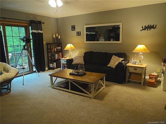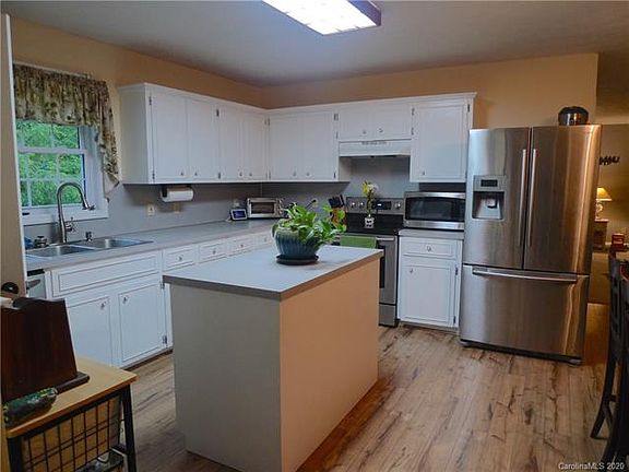Super cute ranch in private location just outside downtown Glen Alpine. Bright kitchen with island, walk in pantry, SS appliances and eating area. Large living room with doors to spacious deck overlooking private wooded rear yard. Split bedroom plan has large master bedroom, private bath with double sinks and large shower. Two additional bedrooms with hall bath. Master and front bedroom have bow windows. Updated flooring throughout. Huge unfinished basement with some framing in place and glass doors to exterior would be easy to finish. Large 2 car garage and extra parking on level gravel drive. Outbuilding behind home does convey. If you are looking for privacy and convenience, this home is fits the bill.