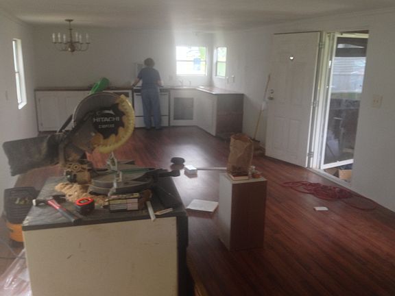 brand new laminate wood floors stained and sealed wood countertops refinished 12lt chandelier over dining area beautiful trim throughout. washer /dryer hookups large covered porch great community park. Big Oaks in Hallsville easy, around-the-corner access to Loop 281 and Interstate 20 This is not a "to-be-moved" home. It already sits at a great park so you won't have to factor in the cost of moving the home.